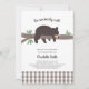 Brown bear cub baby shower invitation features a sweet, sleeping baby bear on a tree branch with soft brown and white buffalo check accents. Watch collection for newly added coordinating items.