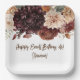 Brown Beige Flowers Floral Party Paper Plate