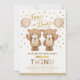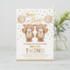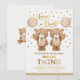 Brown Beige Teddy Bear Balloon Twin Baby Shower Invitation