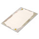 Beautiful vintage notes page in beige and brown colours, decorated with daisy blossoms and postage stamps in the background. Fill the lines with your own notes or any other text.