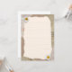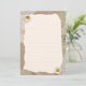 Beautiful vintage notes page in beige and brown colours, decorated with daisy blossoms and postage stamps in the background. Fill the lines with your own notes or any other text.