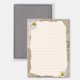 Beautiful vintage notes page in beige and brown colours, decorated with daisy blossoms and postage stamps in the background. Fill the lines with your own notes or any other text.