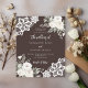 For an elegant and romantic wedding. A brown, bistre coloured background decorated with white florals, roses and white lace. Personalise and add your names and details.