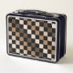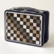 Brown Black Chequered Gingham Pattern Metal Lunch Box