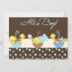 A Digitalbcon Images Design featuring a blue, brown and white colour theme with a variety of custom images, shapes, patterns, styles and fonts in this one-of-a-kind Baby Announcement Card. This attractive and colourful announcement card comes complete with a complementary design on the reverse with customisable text lettering to suit your special announcement.