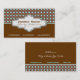 Brown blue polka dot interiors business cards, featuring a brown and blue polka dot pattern. The bottom part is of solid chocolate brown colour. A white and a blue stripe separate the two parts. Your company/name is typed on an elegant damask label with brown and blue outline. Cute, modern design with a retro feel to it, that can be used for many business fields such as interiors, hairstylist, beauty salon, nail salon, cosmetologists, decorator, therapist, crafter, fashion, make up artists and more.