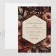 Rich, deep brown botanicals create a moody and romantic atmosphere for your special day. Lush floral elements in deep rose and muted blush hues exude an opulent, enchanting feel. This design sets a dramatic and elegant tone for your union.