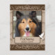 Designed in dark and light brown with a dove on the banner and decorative calligraphy swirl frames and paw prints shaped like hearts on the background. For dogs, cats, or any pets with paws. Pay tribute to a loved pet with these personalised memorial gifts keepsakes or offer your condolences with personalised sympathy gifts from Healing Tears to honour a special pet in your life. Add your image and change the text (Name and dates) to your own.