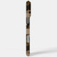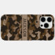 Customize this multi-hued brown camouflage iPhone 16 pro max case with your name in a trendy modern CAP font in dark brown on light brown. It's masculine and perfect for your favorite military, hunting, country or outdoorsman!