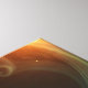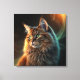 Digital artwork of a brown longhair cat with striking sparkling green eyes. The cat is positioned in 3/4 profile, facing left, with its fur created by smoke. The background is dark, which accentuates the cat's shiny fur and the flowing, translucent patterns that surround it. The lighting highlights the cat's ears, with a warm light filtering through the fur, creating a soft, almost mystical atmosphere. The overall composition is elegant and dreamy, emphasizing the cat's serene expression and the fluidity of the surrounding elements.