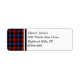 Return address labels with the family tartan for Clan Brown and its septs, including Brune. Vintage Scottish plaid pattern dated to 1906, in bright red, royal blue, and black, with green accents.