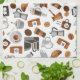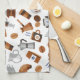 Brown Coffee and Croissant Pattern Tea Towel
