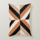 Modern accent pillow design featuring geometric stripes in warm brown tones with a contrast of black.