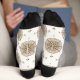 Compass pattern all over the socks and texts on each calf. Representing explorers, hikers and adventurers.