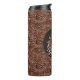 Brown cowgirl floral tooled leather horse head thermal tumbler