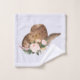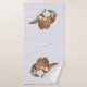 Towel set with a cute design created with watercolors featuring a brown cowgirl hat with a bouquet of pink flowers.