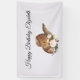 Birthday banner with a cute design created with watercolors featuring a brown cowgirl hat with a bouquet of pink flowers on the brim.