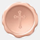 Inside a brown wax seal with irregular contour, there is an embossed cross (It is not really embossed, the illusion of embossed is simulated in the artwork).