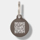 Customisable brown QR code pet ID tag. This pet tag features a scannable QR code that enables anyone with a smartphone to access important information about your pet. You can easily generate a brand new QR code on the design via the "personalise this template " feature. Just add the URL of your contact webpage / social media page or you can even add your email address to the area provided.
