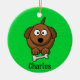 Brown dog with bone personalised on green ceramic tree decoration