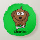 A charming brown dog, with a bone, set against a vibrant green textured background, with a personalised name adding a special touch to this delightful design. Perfect for dog lovers.