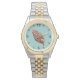 This watch features a photograph of a female duck which shows her brown feathers beautifully well, on a teal background. See my store for more duck photography.