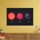 Artist's concept illustrating what brown dwarfs of different types might look like to a hypothetical interstellar traveller who has flown a spaceship to each one. On the left is an L dwarf, in the middle is a T dwarf, and on the right is a Y dwarf. The objects are progressively cooler in atmospheric temperatures as you move from left to right. The L dwarf is seen as a dim red orb to the eye. The T dwarf is even fainter and appears with a darker reddish, or magenta, hue. The Y dwarf is dimmer still. Because astronomers have not yet detected Y dwarfs at the visible wavelengths we see with our eyes, the choice of a purple hue is done mainly for artistic reasons. The Y dwarf is also illustrated as reflecting a faint amount of visible starlight from interstellar space. In this rendering, the traveller's spaceship is the same distance from each object. This illustrates an unusual property of brown dwarfs, that they all have the same dimensions, roughly the size of the planet Jupiter, regardless of their mass. This mass disparity can be as large as fifteen times or more when comparing an L to a Y dwarf, despite the fact that both objects have the same radius.