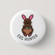 Brown Easter Bunny, Egg Hunter Badge/Button by Stampedy Stamp.