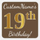 Brown, Faux Gold 19th Birthday + Custom Name Square Sticker