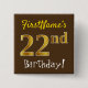 Brown, Faux Gold 22nd Birthday, With Custom Name 15 Cm Square Badge