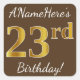 Brown, Faux Gold 23rd Birthday + Custom Name Square Sticker