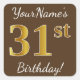 Brown, Faux Gold 31st Birthday + Custom Name Square Sticker