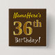 Brown, Faux Gold 36th Birthday, With Custom Name 15 Cm Square Badge
