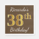 Brown, Faux Gold 38th Birthday + Custom Name Napkin