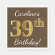 Brown, Faux Gold 39th Birthday + Custom Name Napkin