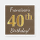 Brown, Faux Gold 40th Birthday + Custom Name Napkin