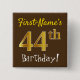 Brown, Faux Gold 44th Birthday, With Custom Name 15 Cm Square Badge