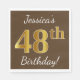Brown, Faux Gold 48th Birthday + Custom Name Napkin