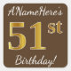 Brown, Faux Gold 51st Birthday + Custom Name Square Sticker