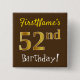Brown, Faux Gold 52nd Birthday, With Custom Name 15 Cm Square Badge