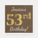 This simple paper napkin design features a message like "Jessica’s 53rd Birthday!", with the "53rd" having a faux gold-like appearance, on a brown coloured background. The name can be personalised. It could be used at a birthday party for somebody who is celebrating their fifty third birthday. [~Z0000082]