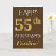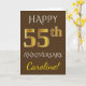 This simple, personalized wedding anniversary greeting card design features the message "HAPPY 55th ANNIVERSARY", with the "55th" having a faux gold-like appearance. The front also features a customized name, and a brown colored background. The inside features a customizable wedding anniversary greeting message. It could be given to a husband or a wife in celebration of the couple’s fifty fifth wedding anniversary. [~Z0000090]