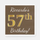 Brown, Faux Gold 57th Birthday + Custom Name Napkin