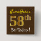 Brown, Faux Gold 58th Birthday, With Custom Name 15 Cm Square Badge
