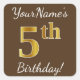 Brown, Faux Gold 5th Birthday + Custom Name Square Sticker