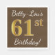 Brown, Faux Gold 61st Birthday + Custom Name Napkin