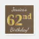 Brown, Faux Gold 62nd Birthday + Custom Name Napkin