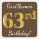 Brown, Faux Gold 63rd Birthday + Custom Name Square Sticker
