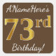 Brown, Faux Gold 73rd Birthday + Custom Name Square Sticker