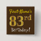 Brown, Faux Gold 83rd Birthday, With Custom Name 15 Cm Square Badge